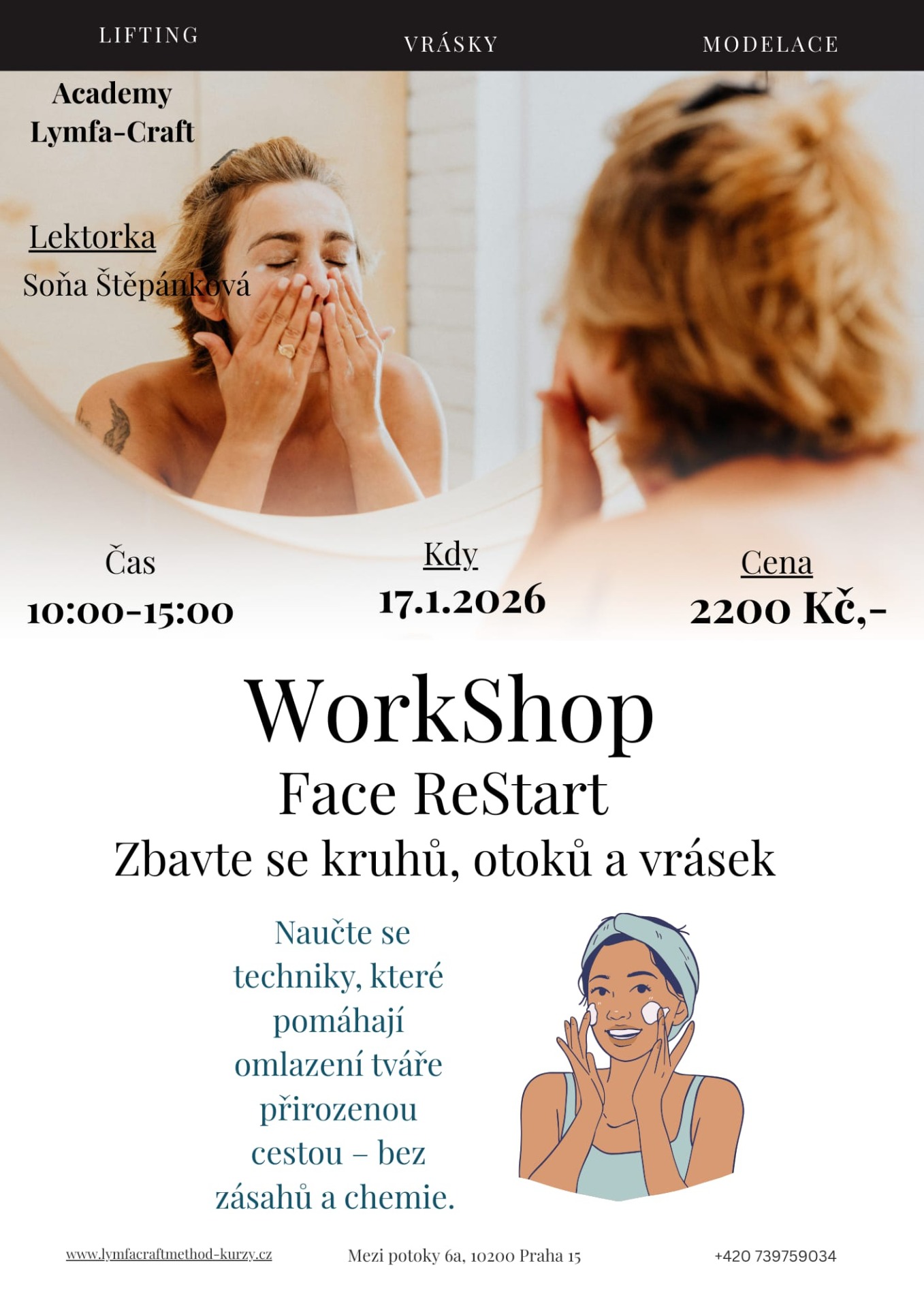 Tento workshop jsme vytvořili právě pro Tebe – ženu, která chce porozumět svému obličeji, naučit se o něj pečovat a přirozeně zpomalit jeho stárnutí.